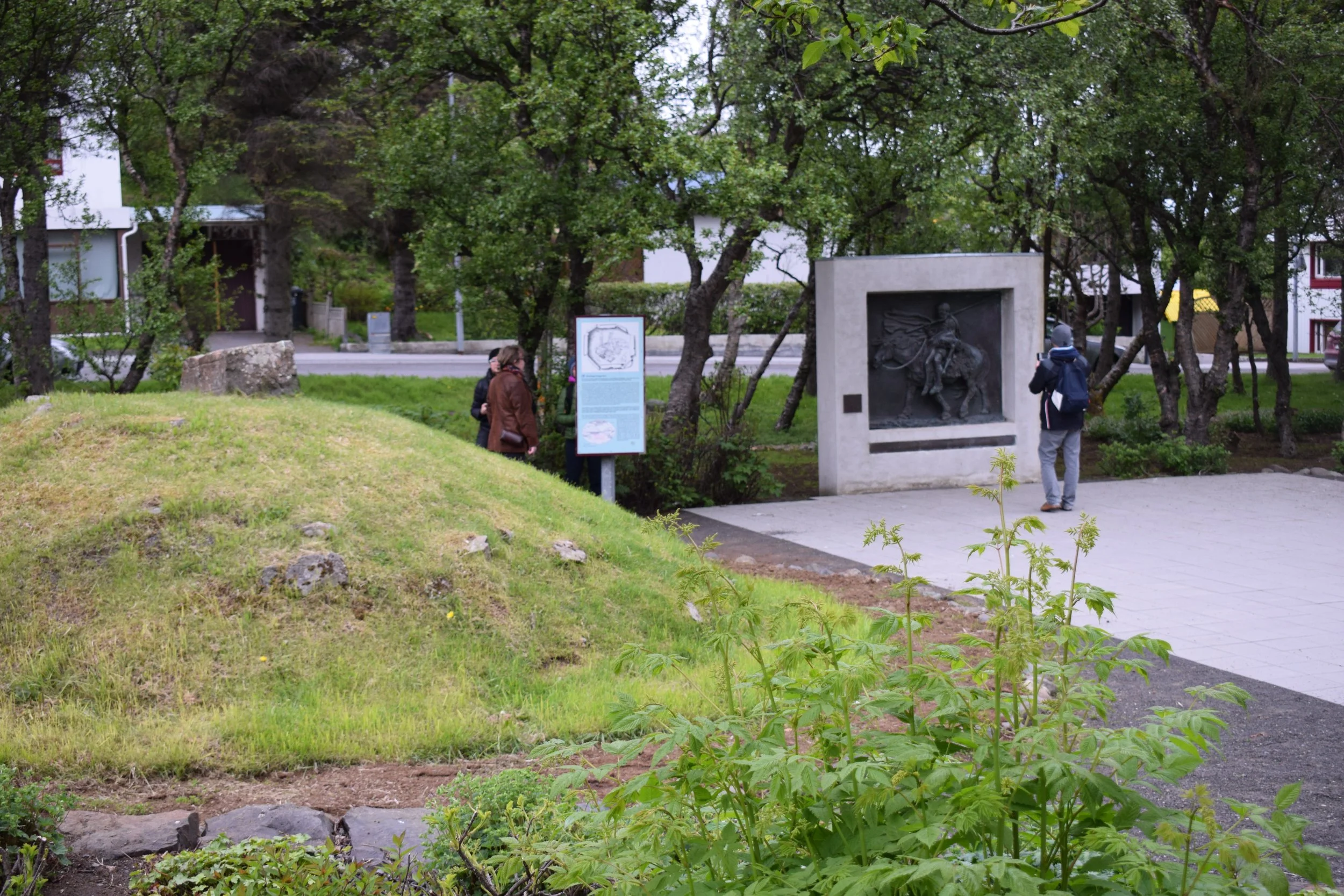 Skallgrímsgarður is one of the main public spaces in Borgarnes. There is the mound of Skallagrím Kveldúlfsson and Böðvar Egilsson. On the other side of Borgarbraut, on the so-called Kveldúlfsvelli, there is Kveldúlf's mound, but little is known about it. Both of these mounds are listed as the main landmarks of Borgarness on maps from the beginning of the 20th century, and there is an idea to create a connection between them with a new central square. In this project, there is an interest in exploring the attitudes and ideas of Borgarnes’ residents, how it would be best to use such a square and what it could look like.